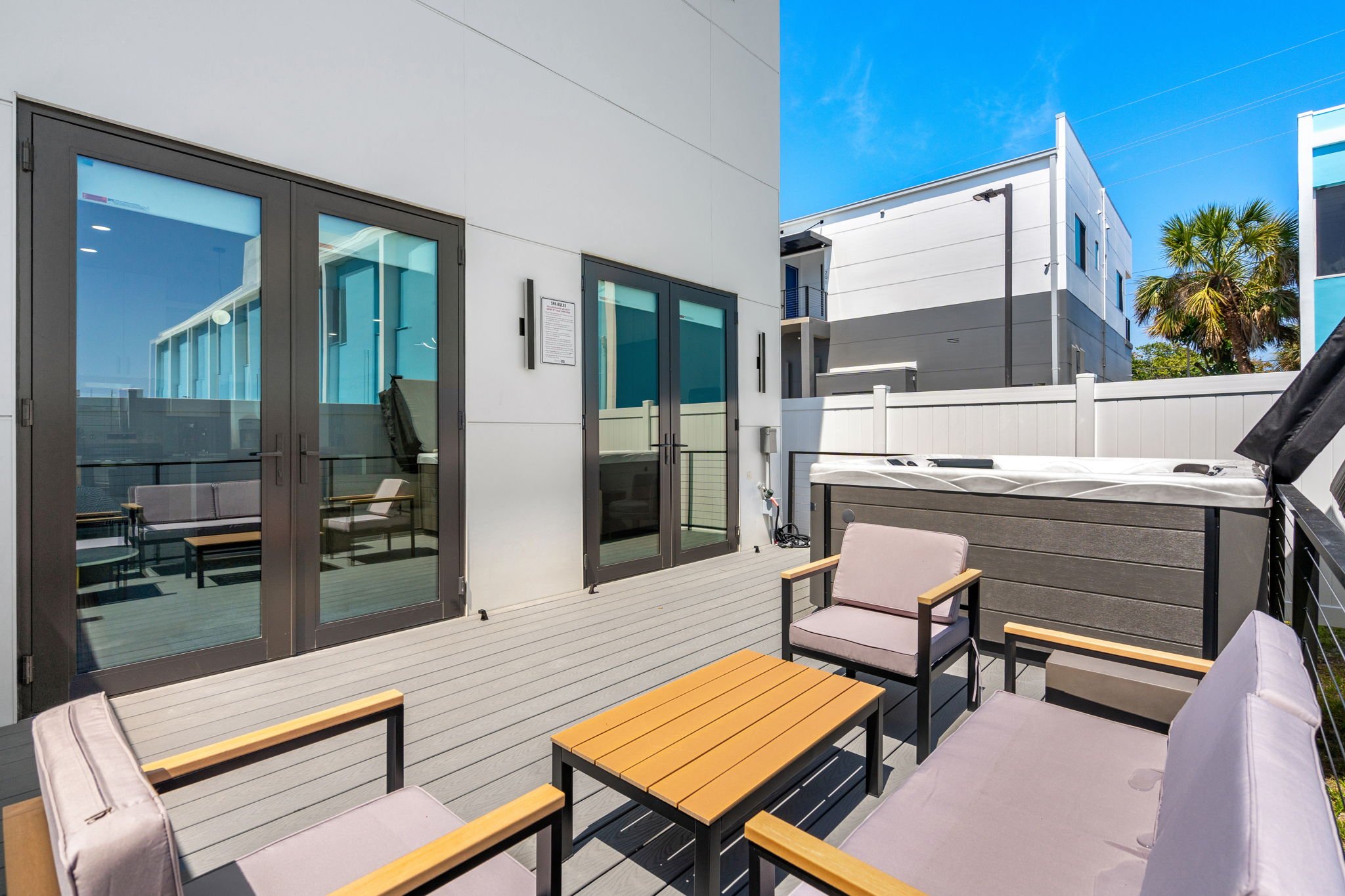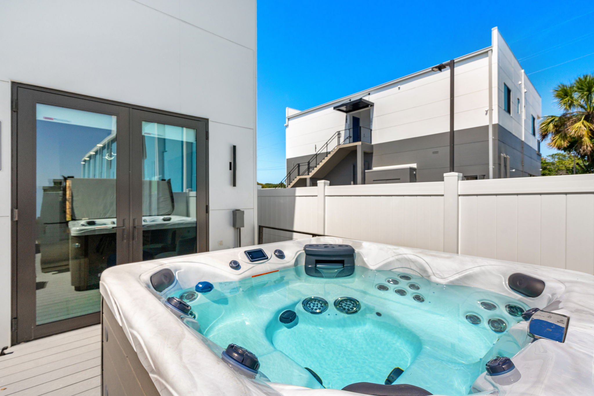 Escape to our Villas at Wave Haven, 2 beautifully modern 3-bedroom, 3.5-bath townhome located just across from Cocoa Beach’s family-friendly Lori Wilson Park. Whether it’s a family vacation or a romantic getaway, unwind in style with our 7-person Master Spa Twilight Series Therapeutic Hot Tub for the ultimate relaxation. With easy access to world-class dining and downtown Cocoa Beach, your perfect coastal retreat awaits!